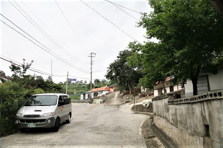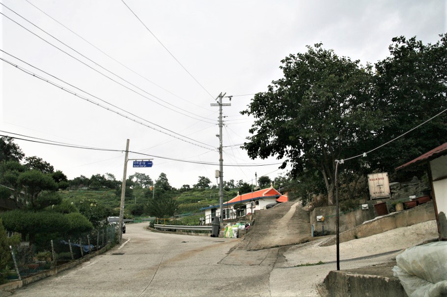 언덕으로 올라가는길 좁은 도로는 개인들의 집으로 들어가는