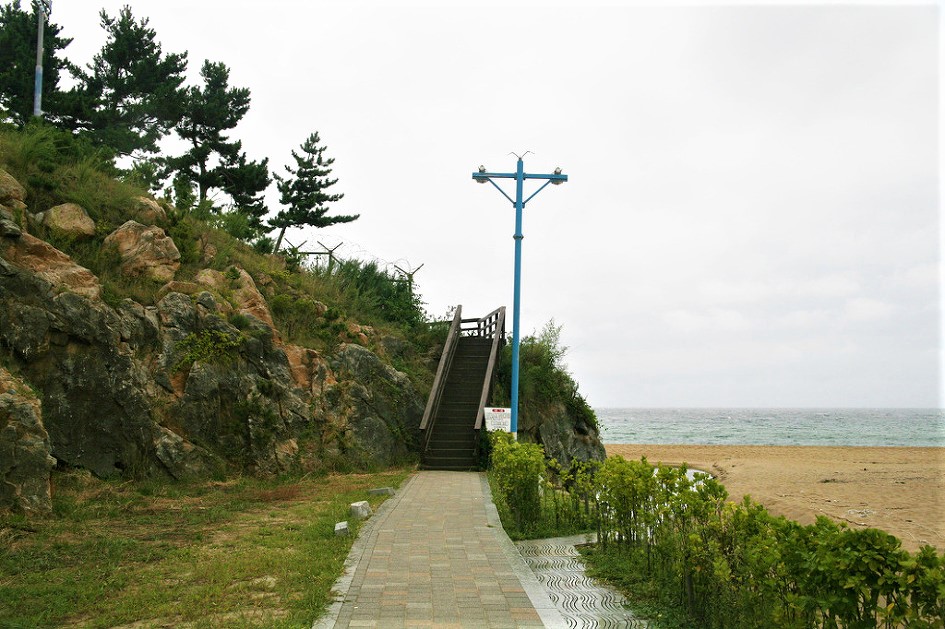수로부인공원 건물아래 해변 데크계단길로