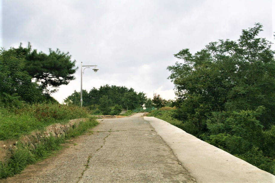 콘크리트 포장이나 아스팔트 포장이 전여 안되여 있는 흙길이다,