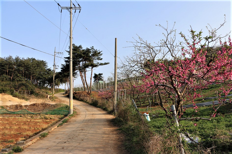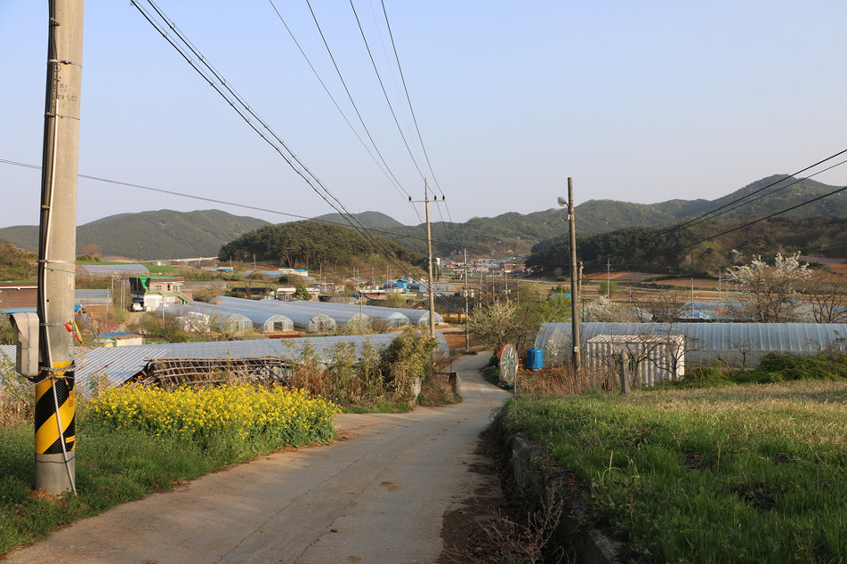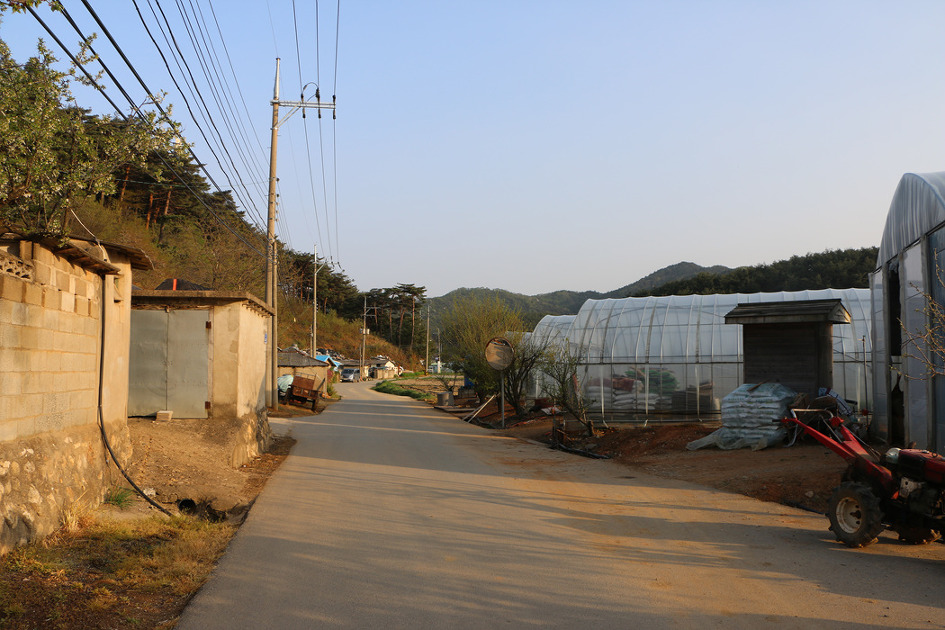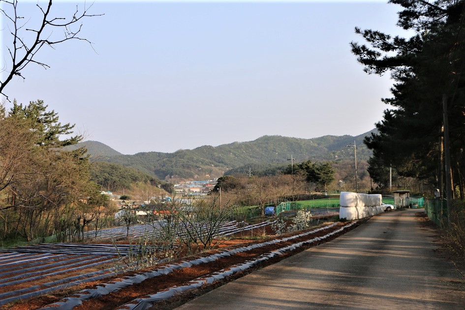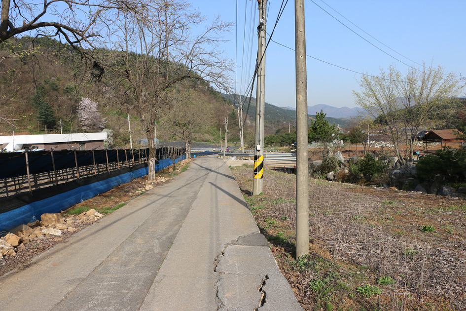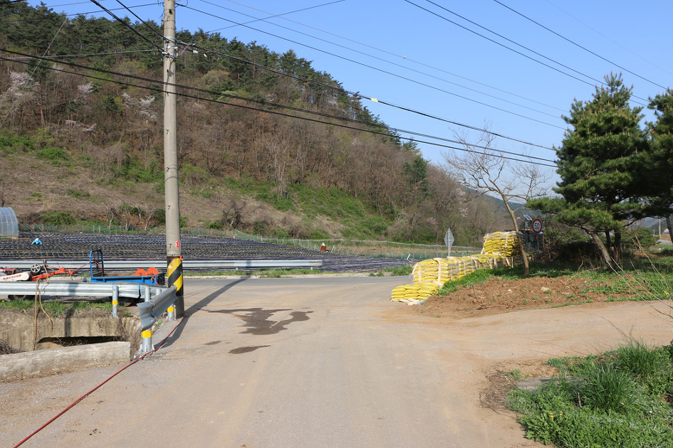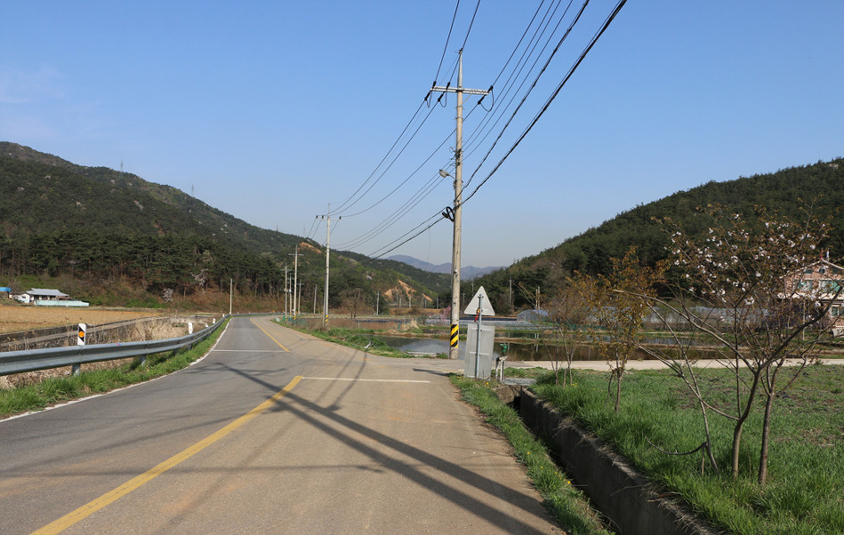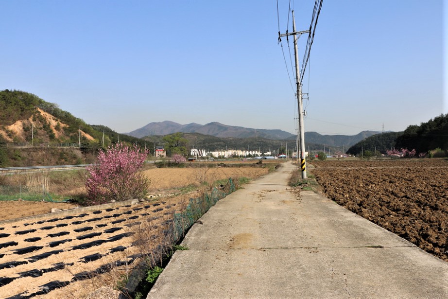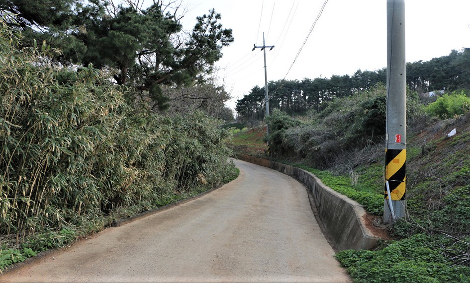 세멘트포장이 되여 있는 농로를 따라