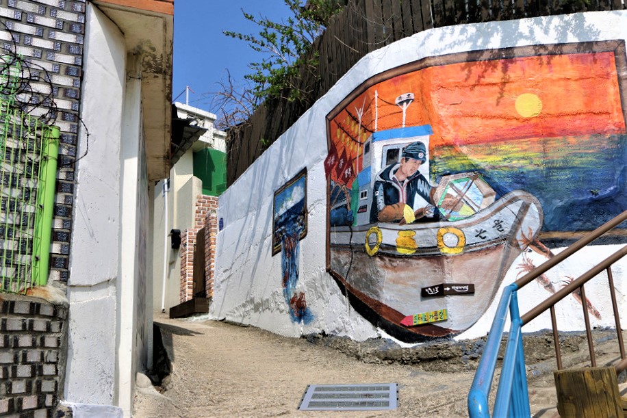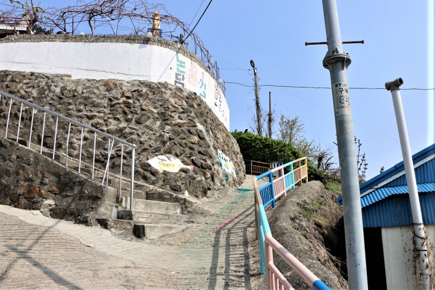 오래된 담장에 그려진 그림들을 보면서 올라가다 보면 금방 묵호등대에 도착할수있다