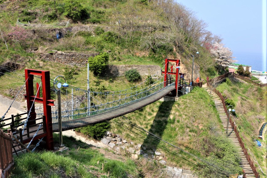 출렁다리인 이곳은 등대로 가든 논담길이다,