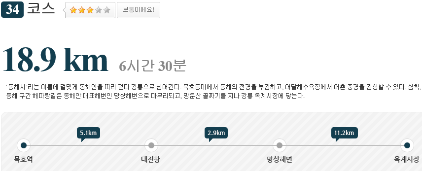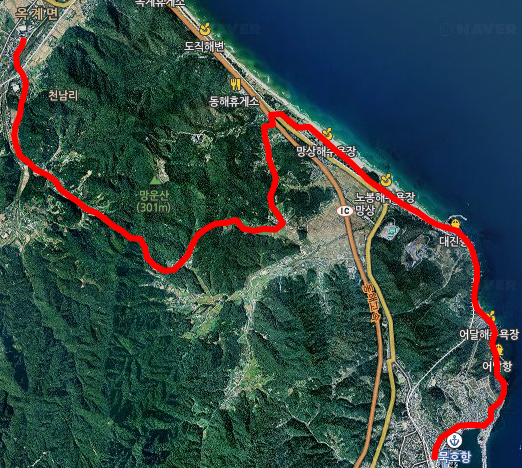 묵호역에서 옥계시장 까지의 34코스 지도