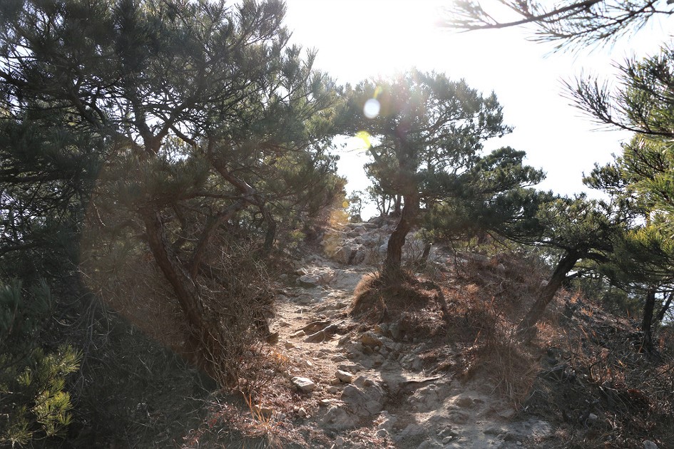 겨울산이지만 바다에서 불어오는 바람은 얼굴을 할퀴듯이 때린다,