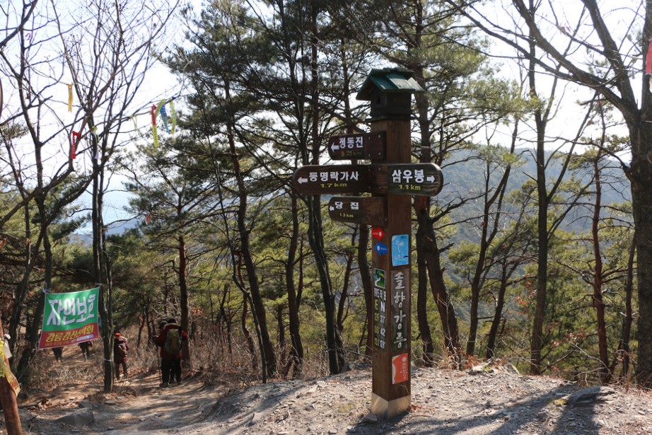 삼거리에서 출발하여 활공장 전망대, 고려산성, 삼우봉, 괘방산,