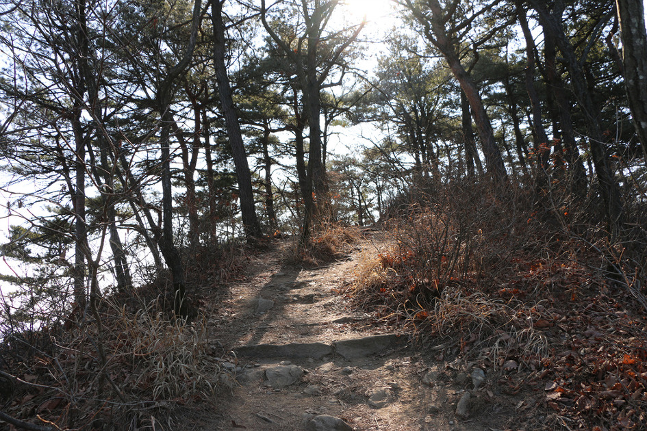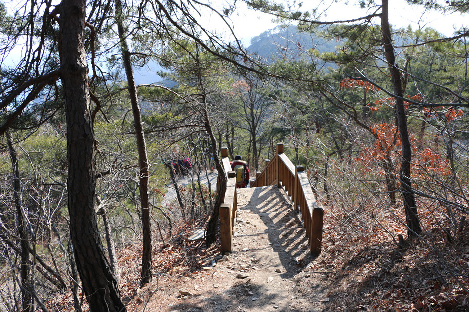 산길 능선을 따라 가는길 가끔은 나무로 만든