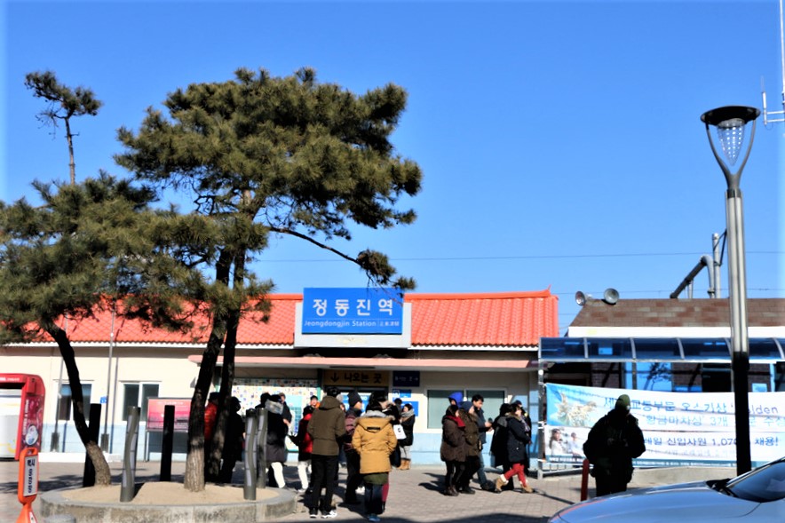 정동진역이라 붙어있는 구, 역사 앞에서 기념찰영을 하고 있는 것을 보니, 한적하고