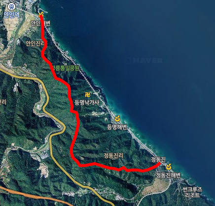 그러나 2016년 1월 24일 안인해변 삼거리에서 정동진까지