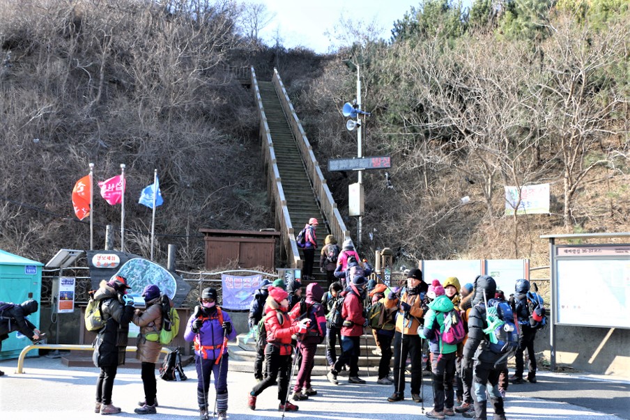 한 겨울이라 겨울채비를 단단히하고 오르는