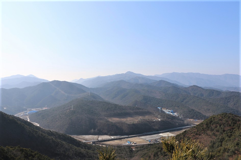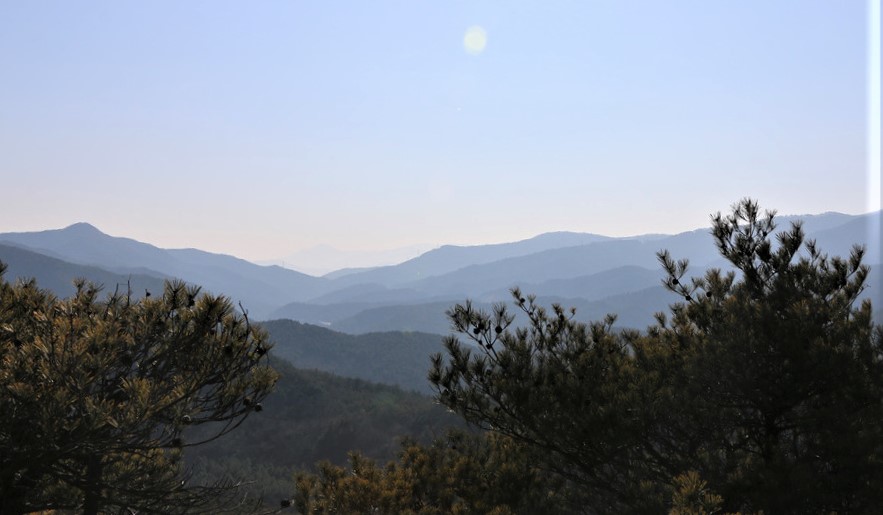 없겟지만 서쪽을 바라보면 굽이처 흐르는 태백산맥 줄기가 보인다,