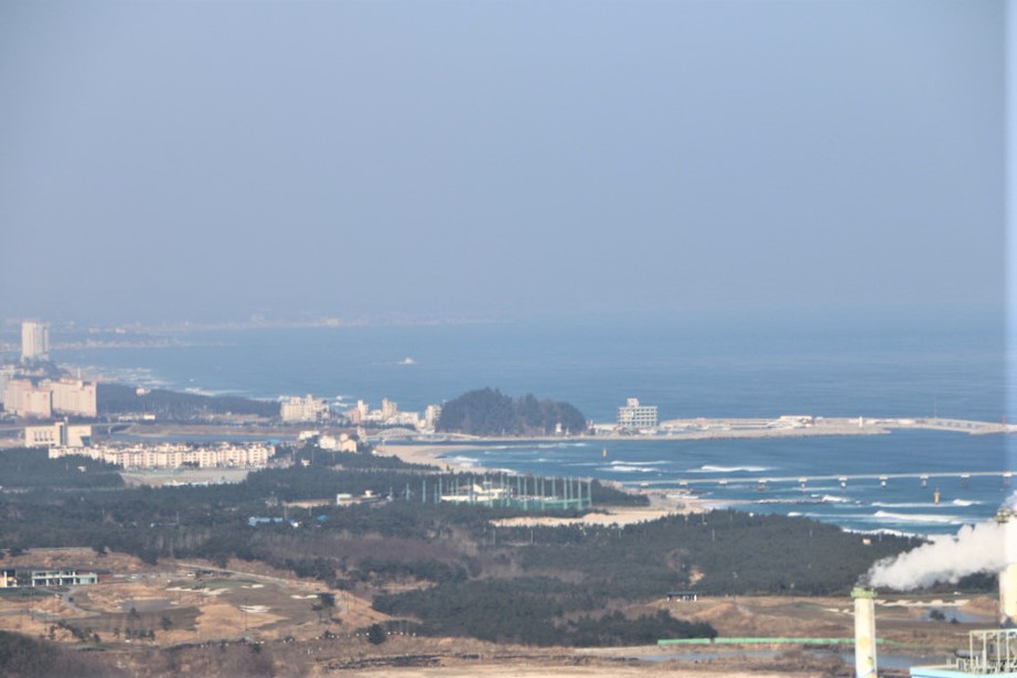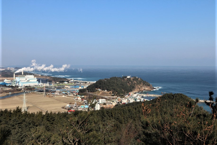 안인진항과 강릉화력 발전소가 내려다 보인다,