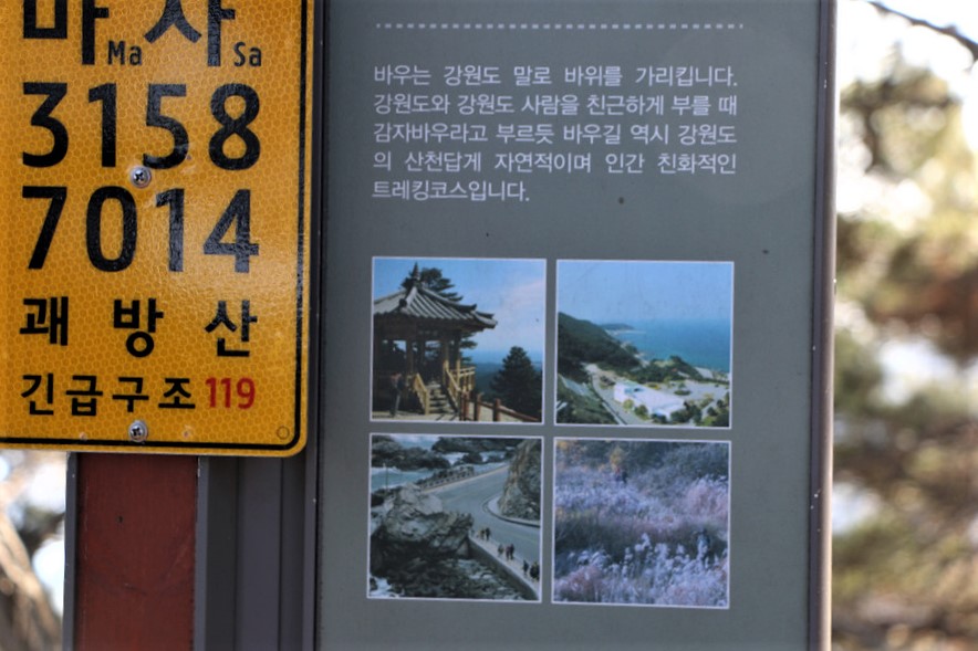 강릉 바우길 임을 알리는 팻말도 붙어 있다,