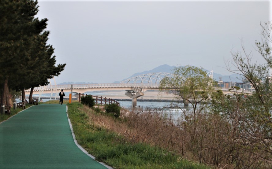 오른쪽으로 들어가서 남항진 해변길로 해서 솔바람 다리를건너