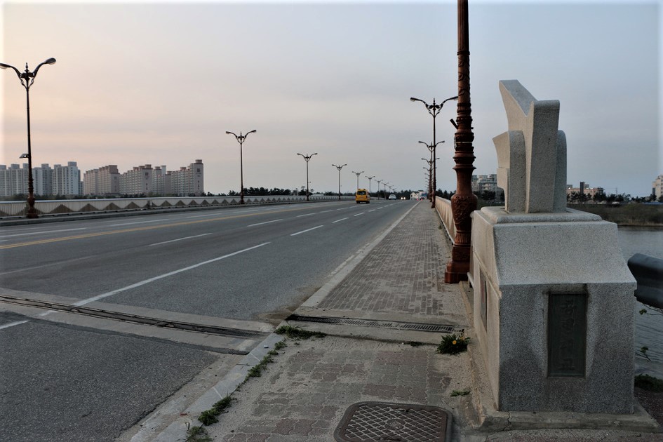 강릉남대천 하류 공항대교 를 건너간다,