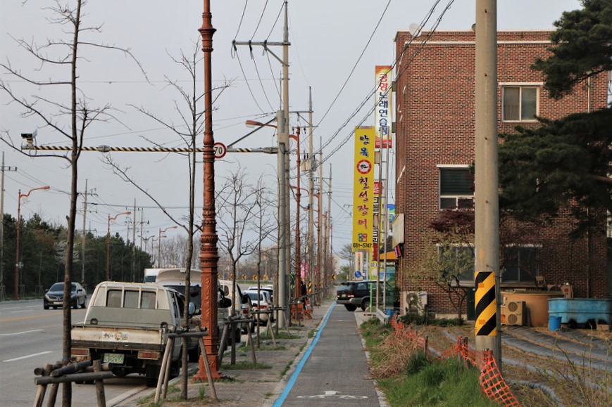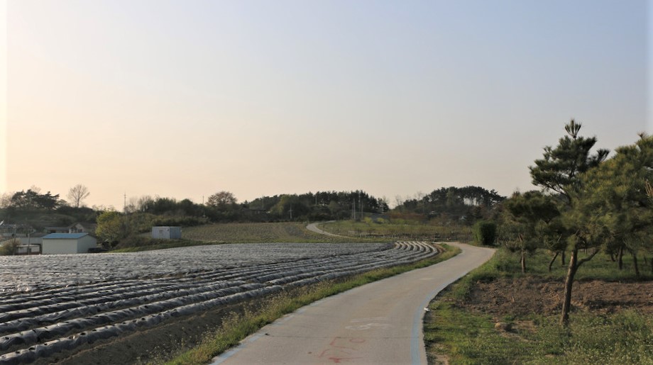 농로 한가운데로 나 있는 자전거길로 간다, 이 길은 섬식천으로 연결되는 길이였다,