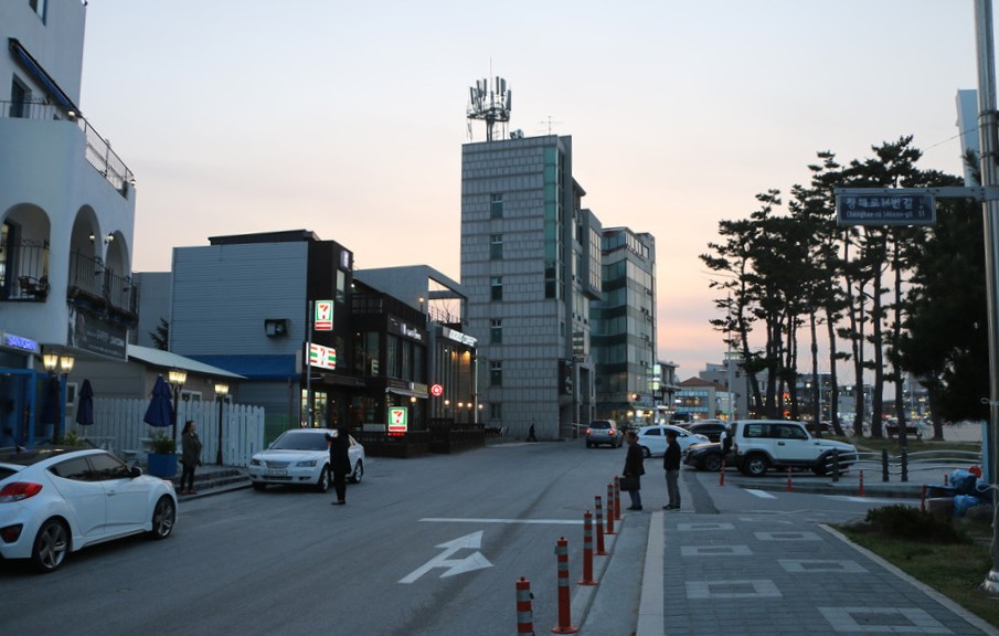 아파트에서 부터 강릉 안목항 해맞이공원 까지 이어지는 도로다