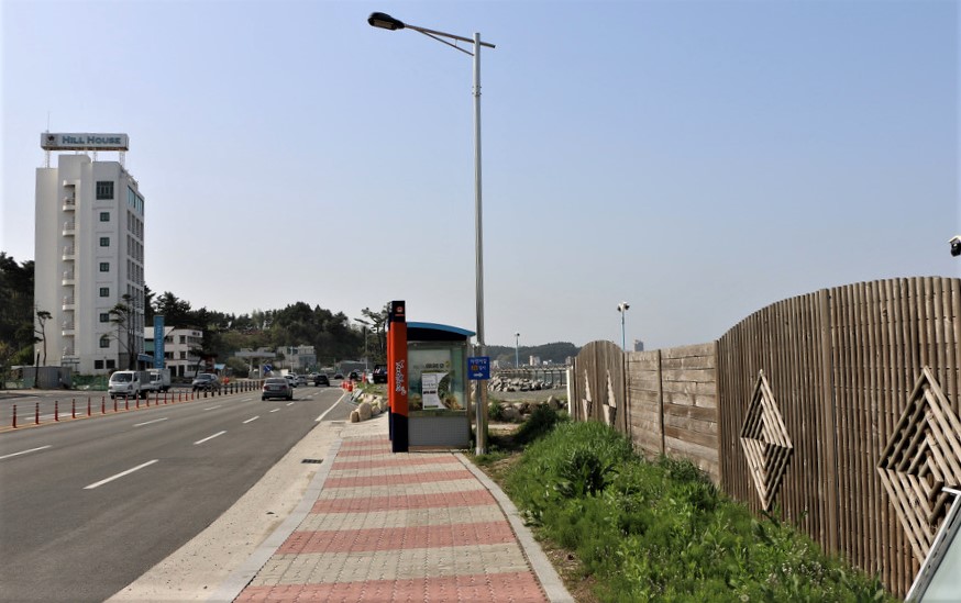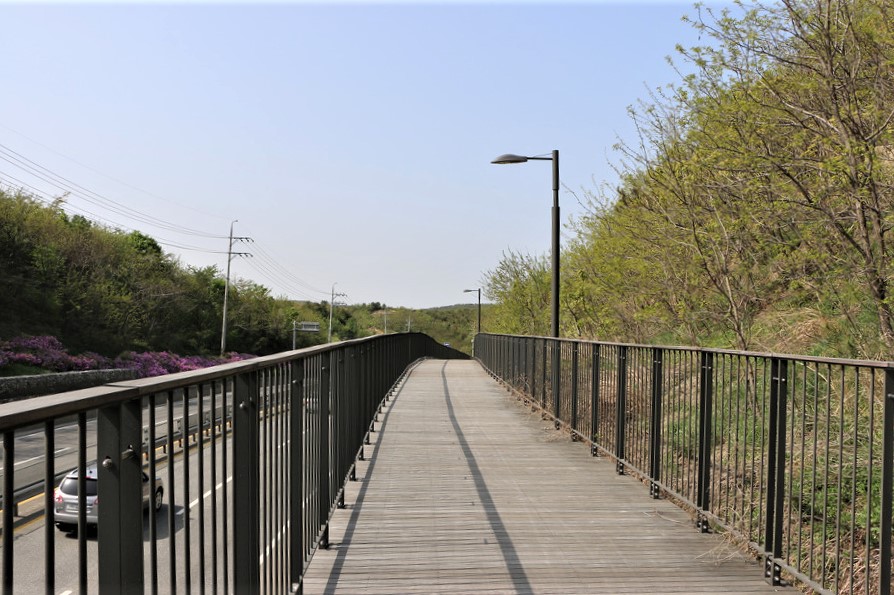 자동차 도로와 데크인도 그리고 철조망과 바다가 함께 걷는