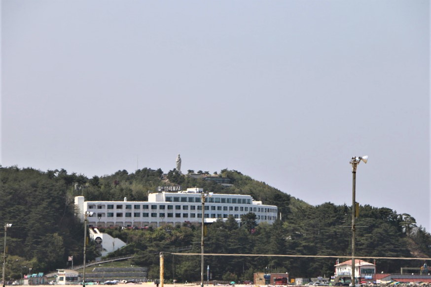 이제 길고 긴 백사장과 큰 건물이 보이는 것을 보니
