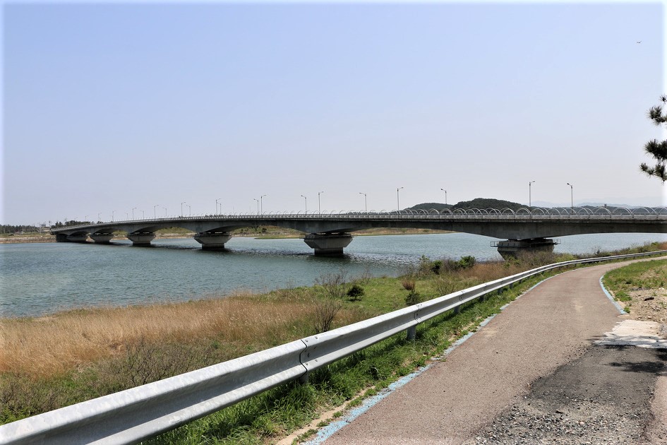 다리를 건너와서 돌아 본 낙산대교와 양양 남대천,