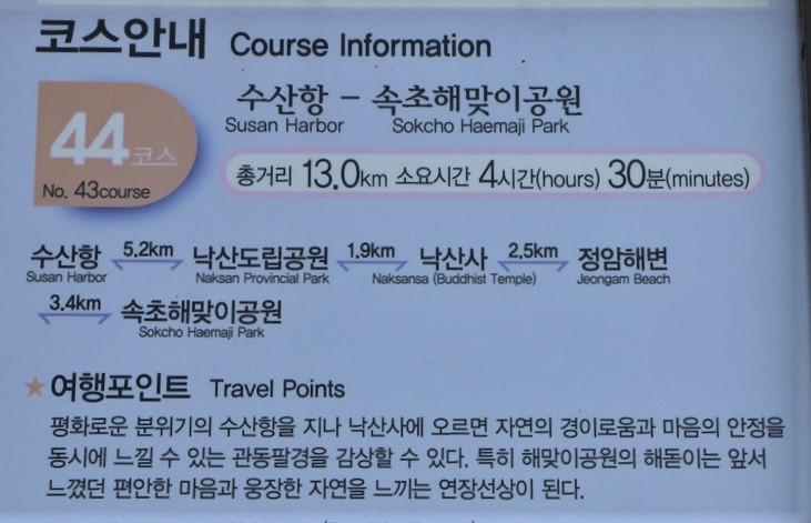 44코스는 양양군 경계가 끝나고 속초시로 변경되는 양양군