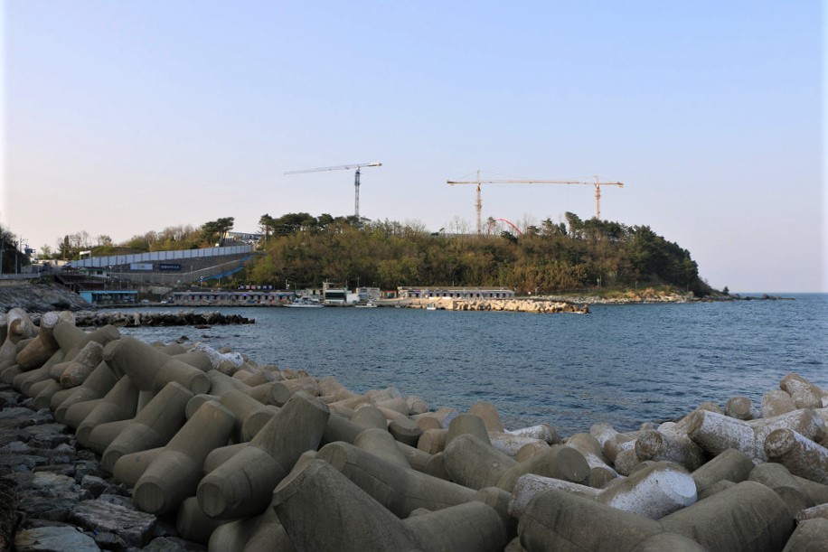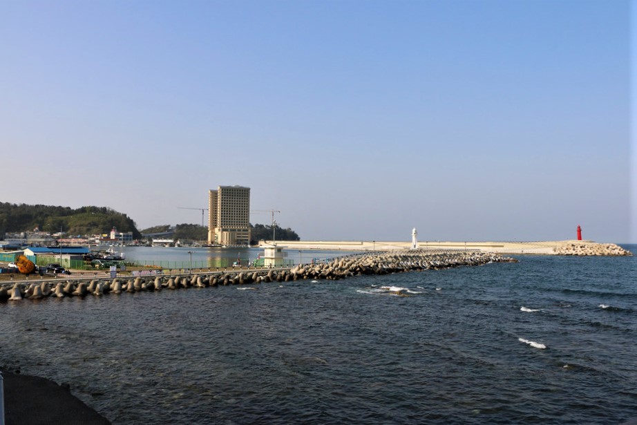외옹치항 뒤 산에는 대형 리조트 공사중인게 보인다,