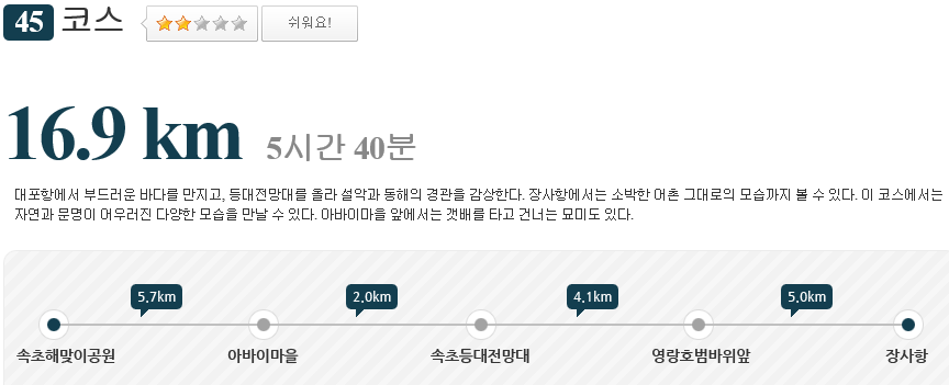 해파랑길 45코스와 45코스의 구분 분기점이 있는게 보인다,
