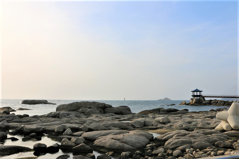 여기는 백사장이 있는 해안이 아니고 기암괴석으로 이어저 있다,