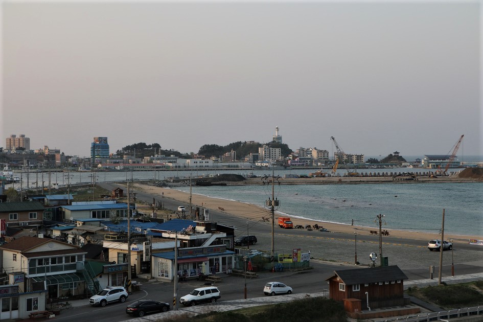 보이는 백사장은 외옹치해변이다, 외옹치해변은 속초시 대포동 외옹치마을에 있는
