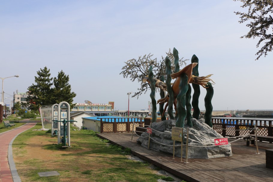 오징어가 걸려있는 조형물도 보이고