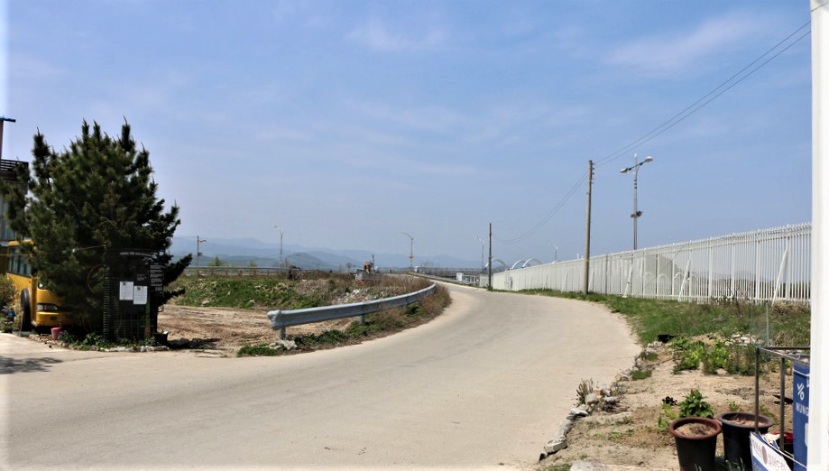 그래서 이렇게 철 울타리 외곽으로 가야한다,