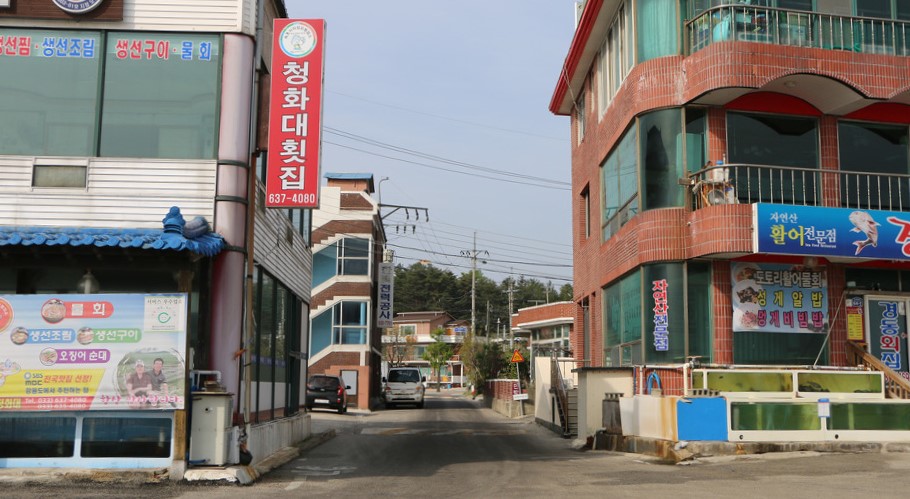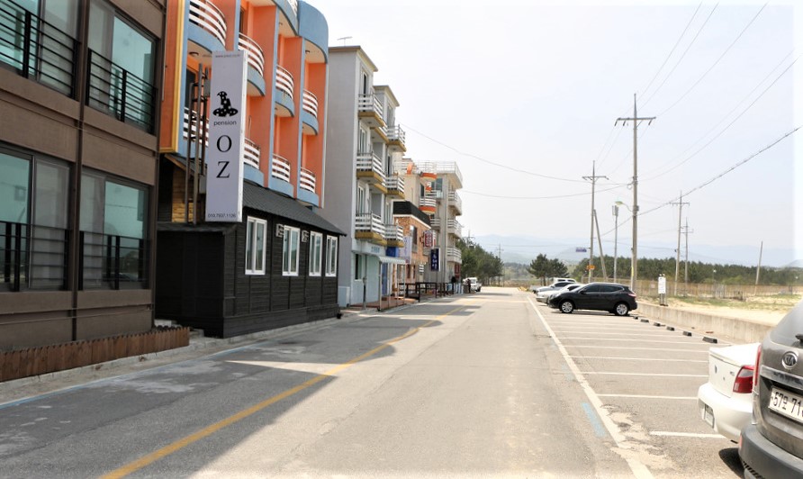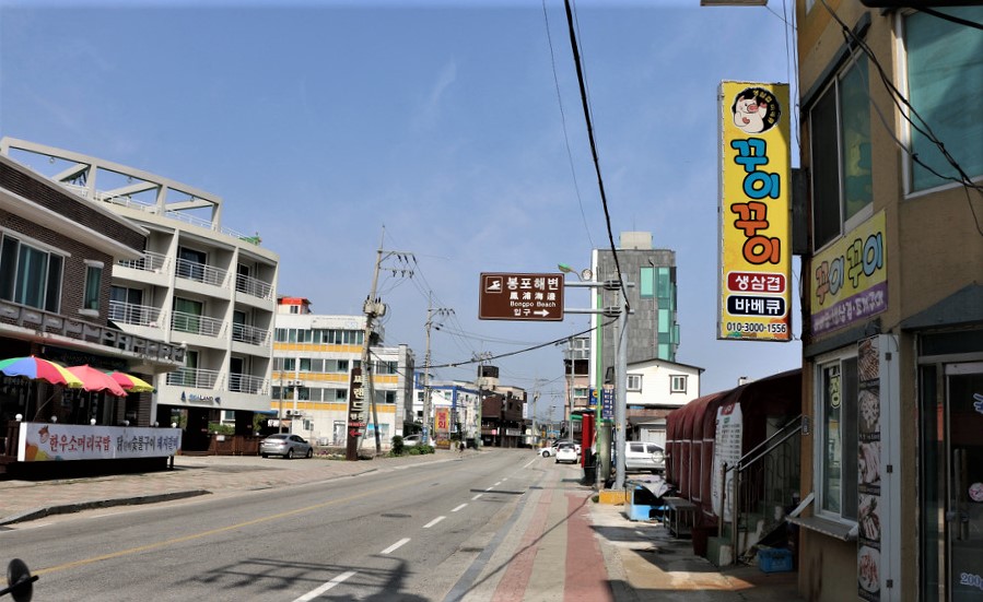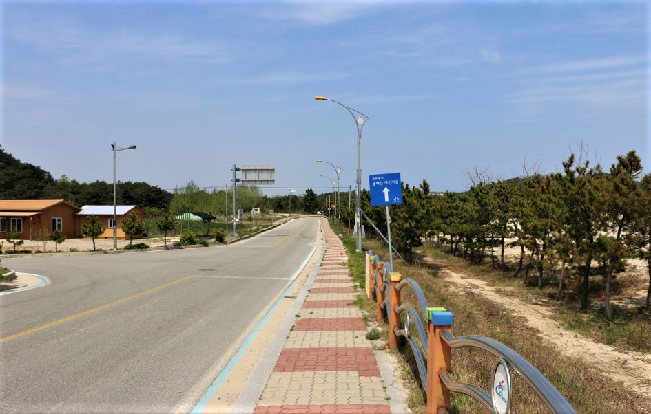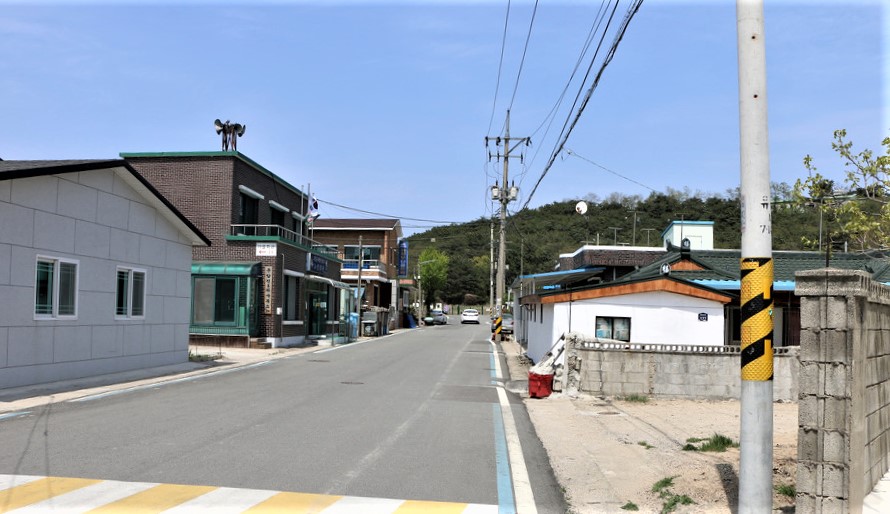 국도 7호선에서 동쪽으로 700m 떨어져 있어 조용하다, 마을에서 해안관할 군부대의