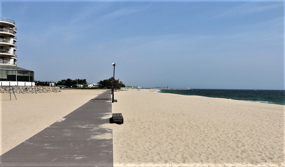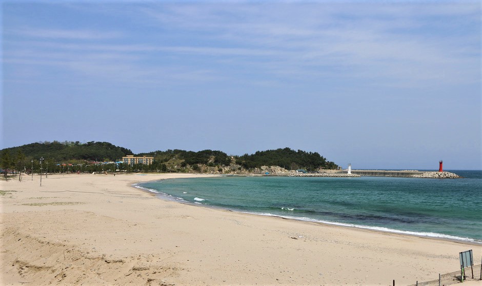 천진해변은 물이 맑고 청정할 뿐 아니라 백사장이 깨끗하다.