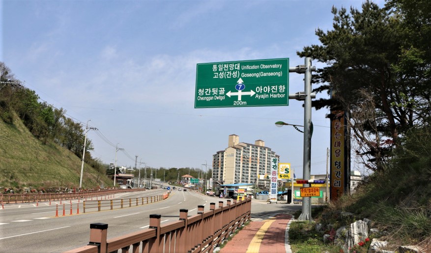 이제 고성통일전망대 안내가 보이기 시작하는 지역이다,