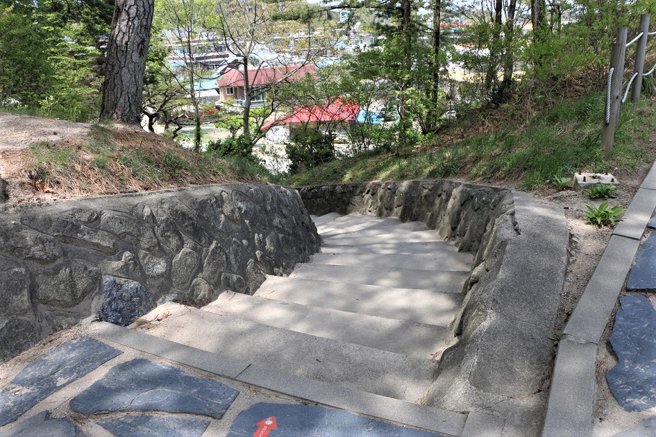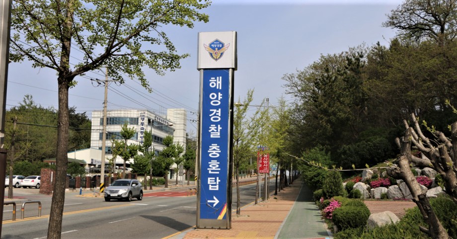 해양경찰 충혼탑 입간판이 있는 인도를 따라서 올라가면