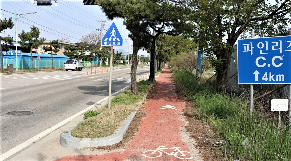 걷는 길과 자전거 도로가 나란히 함께간다,