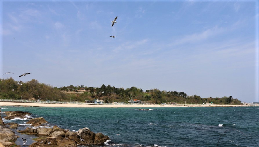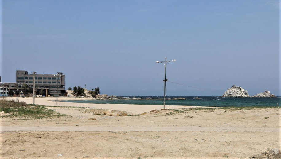 교암리 해수욕장은 금강산의 제 1해수욕장이라고 하는데, 길이 1km의