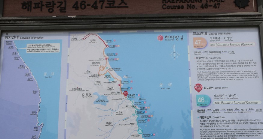 이제 해파랑길 마지막 지역인 46코스와 50코스(66,3km)의 답사기록이다