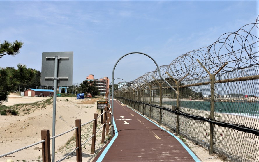 해안 철조망 뒤로 청간정으로 가는 길을 만들었다,