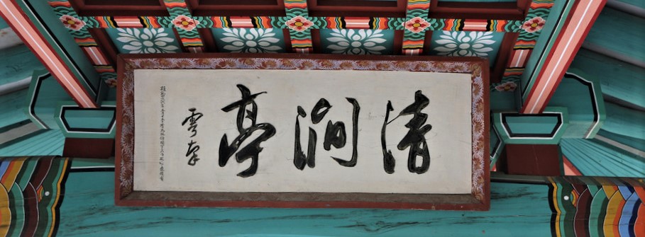 청간교를 건너 멋스럽게 세워저 있는 청간정 안내판,