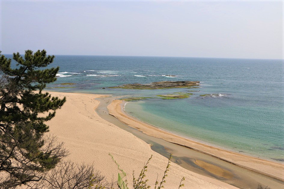 바다는 물깊이가 1~2m 내외다, 이곳의 모래는 '우는 모래' 라는 뜻으로