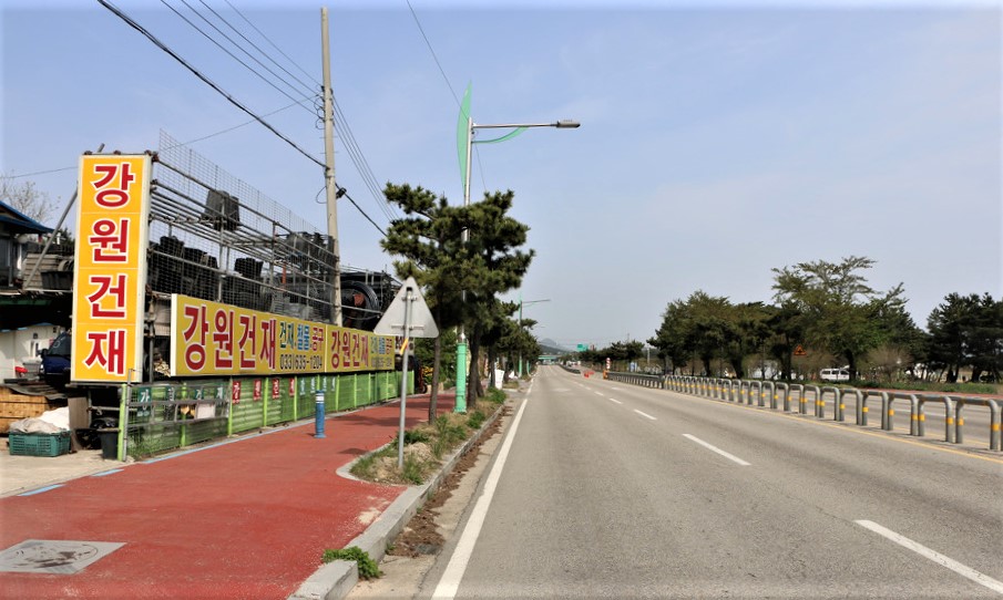 7번국도 오른쪽 인도를 잠시 따라올라가다가 강원건재상이 있는 곳으로