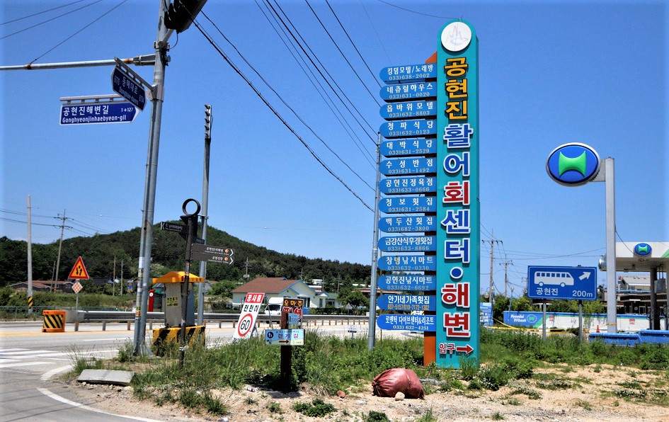 공현진해수욕장 버스 승강장이 있다, 승강장 뒤에는