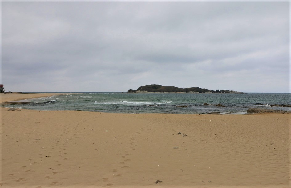 송지호 해변과 마주하고 있는 죽도가 보인다,