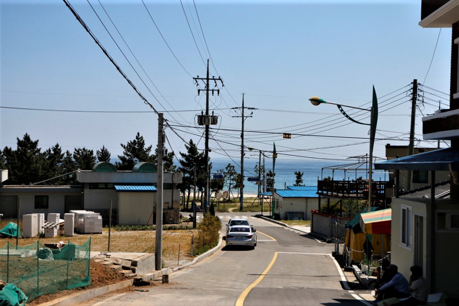 죽왕우체국 맞은편 해안으로 들어가는 도로를 따라간다,