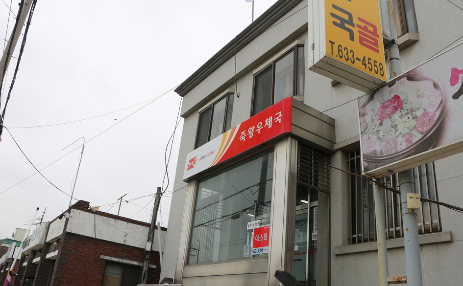 7번 국도 건너편에 있는 죽왕우체국 앞이다,