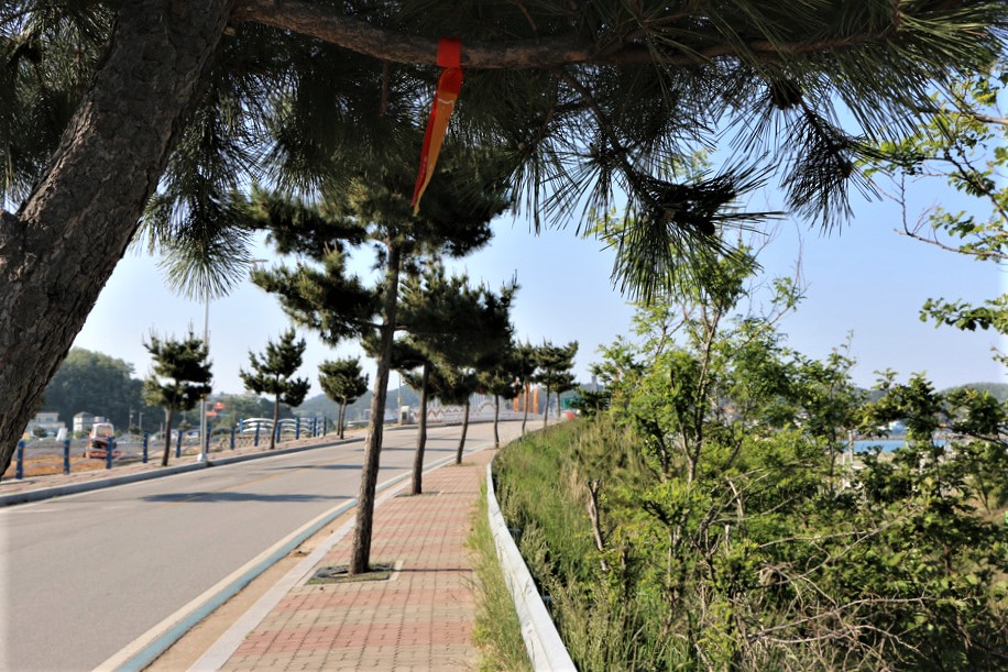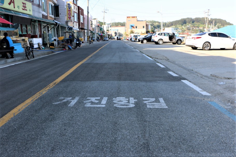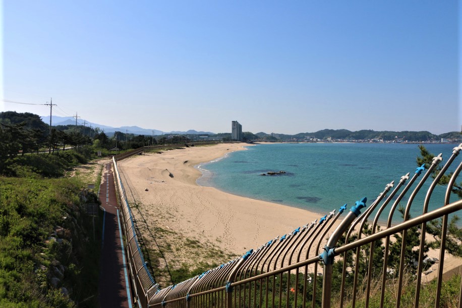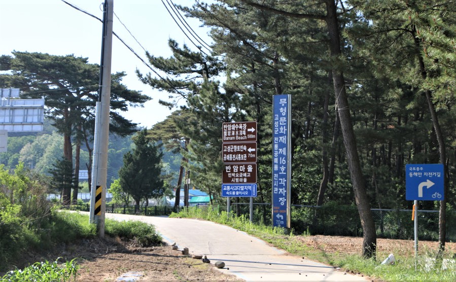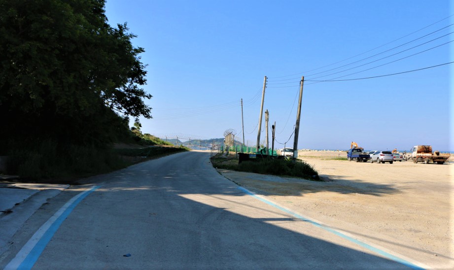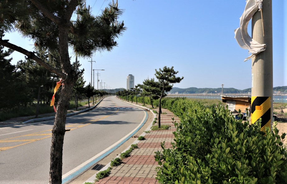 왼쪽에는 7번국도, 오른쪽은 해안, 가운데로 길을
