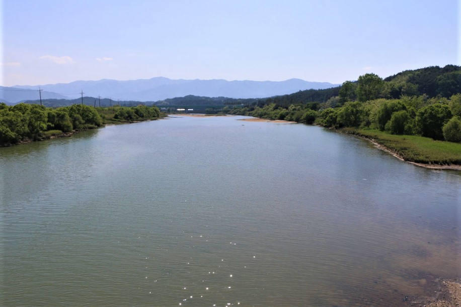 유유히 흐르는 북천 상류에 다리가 보인다,