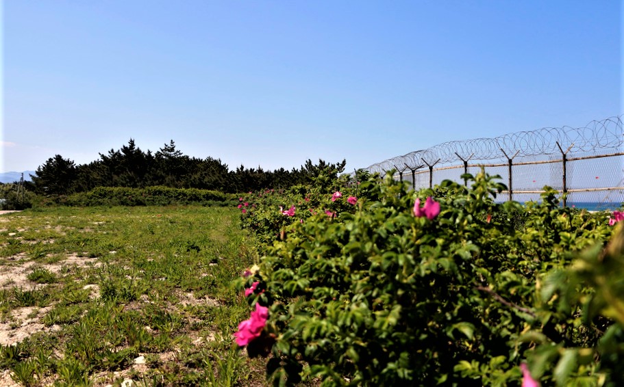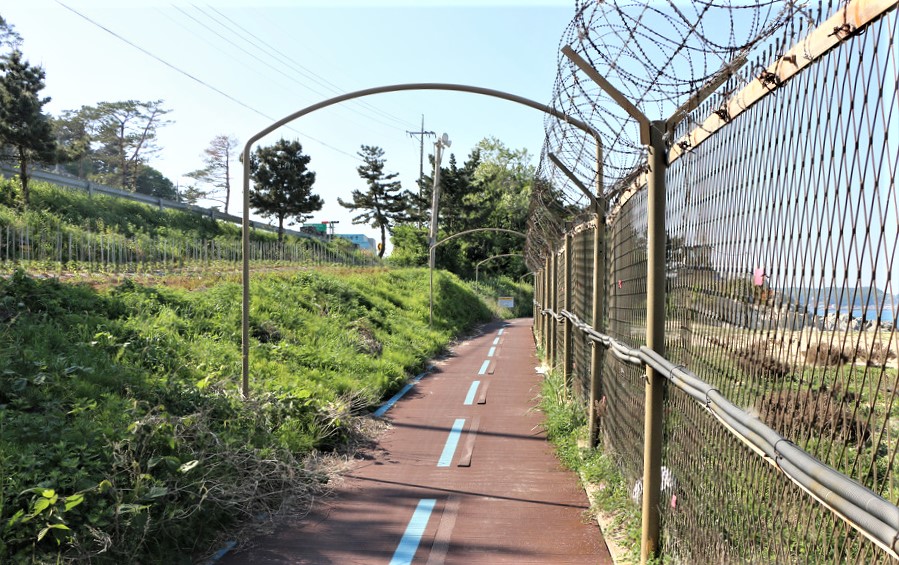 이곳 해변도 일직선으로 길게 철조망이 이어진다,