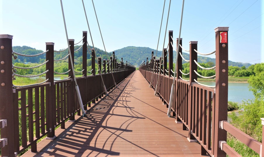 지천이 합류되는 지점에 다리가 새로 놓이고 쉬여갈만한 정자가 있다,