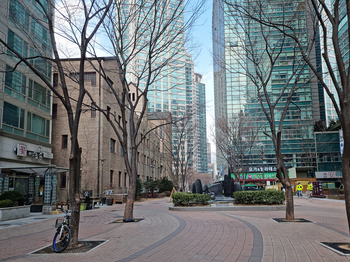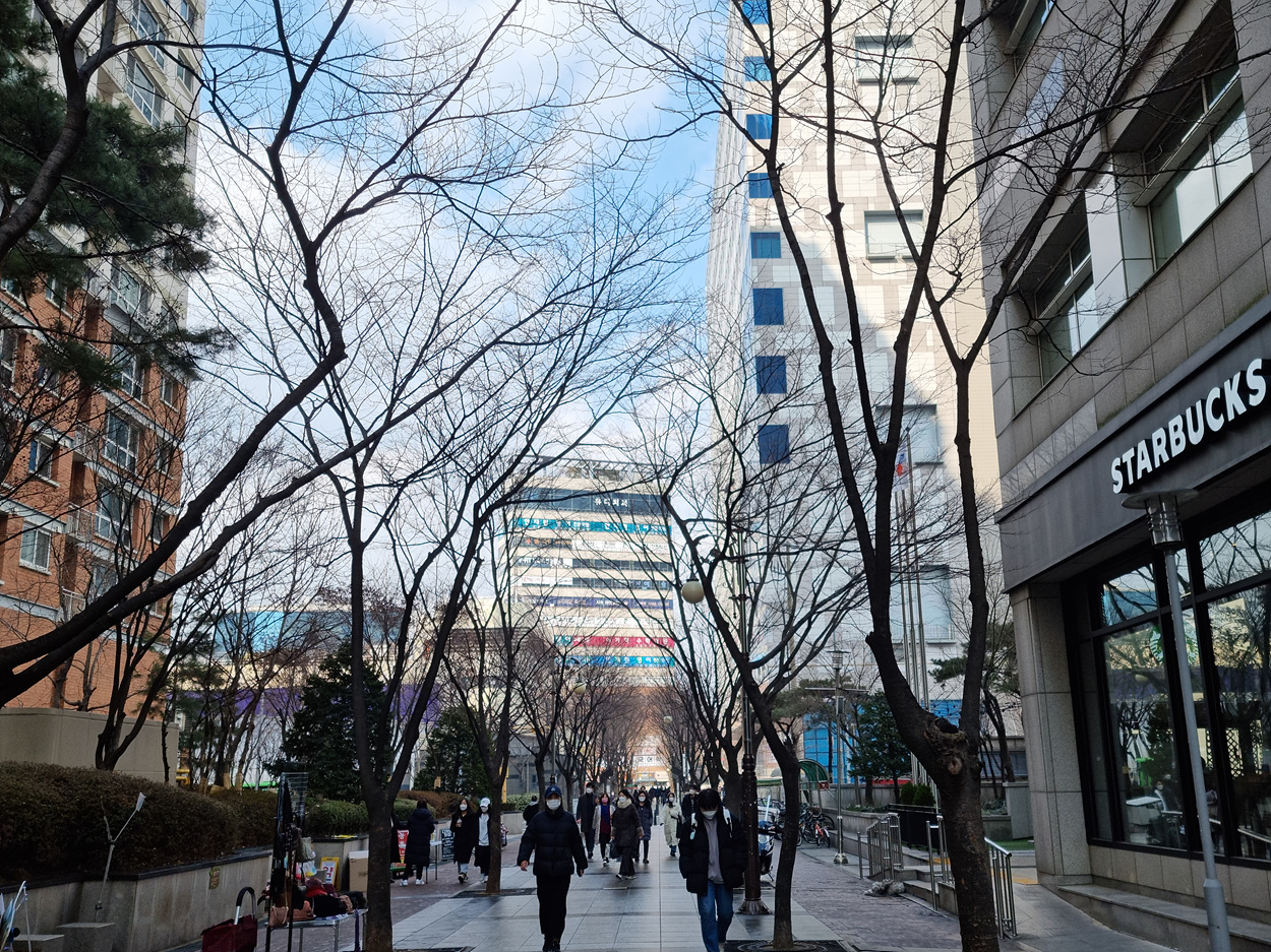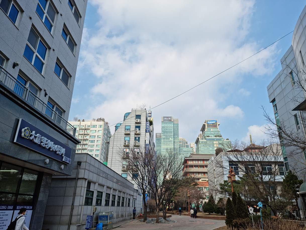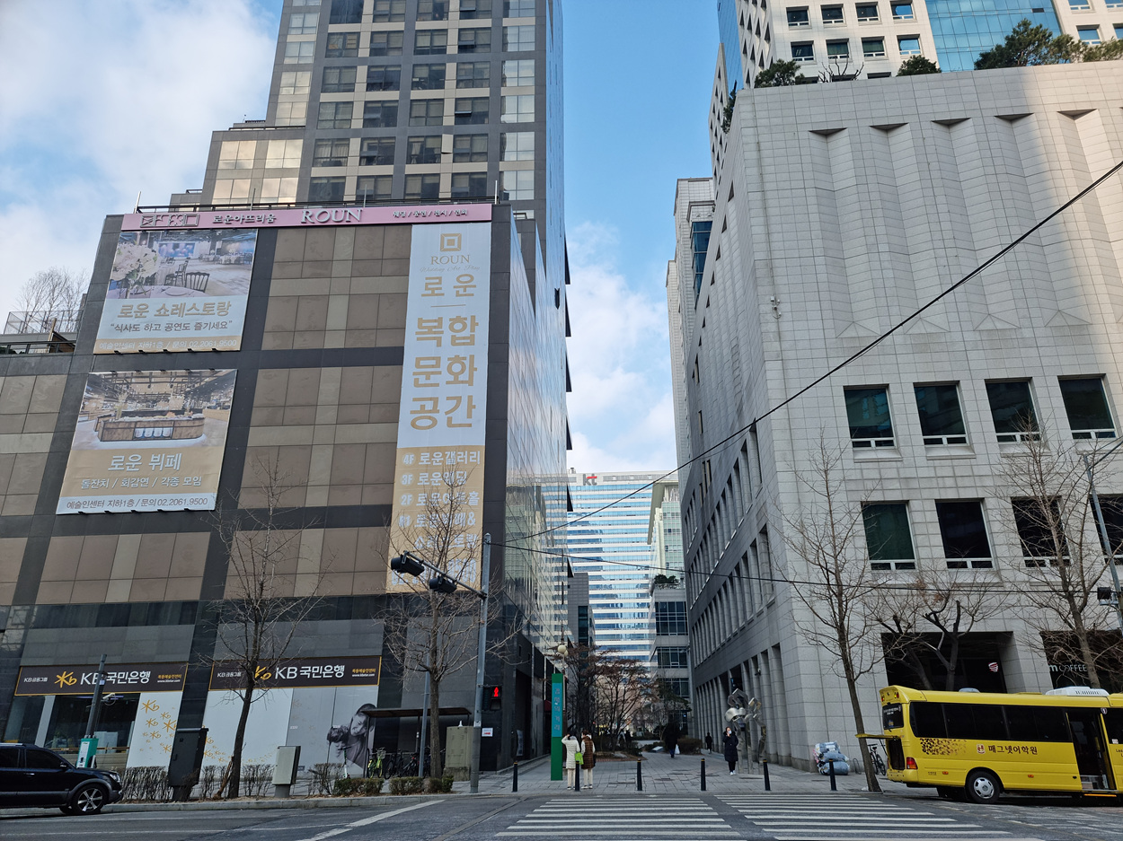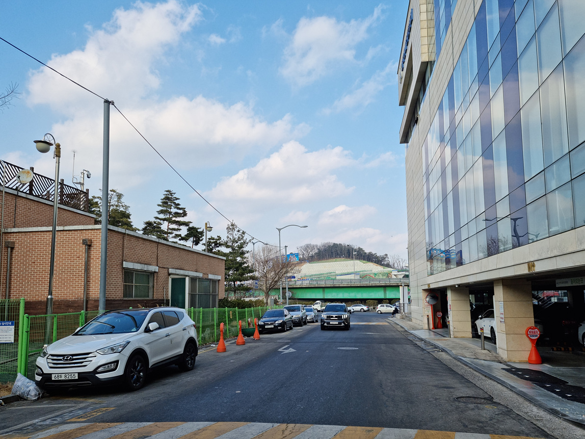빌딩들 가운데길로 양천세무서 뒤로 간다, 오른쪽에 보이는 작은?건물이 양천세무서고